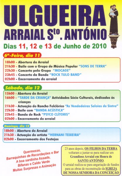 - Bailes, Espectáculos, Bares, Restaurante, Barraca das Iscas, Quermesse e Tômbola