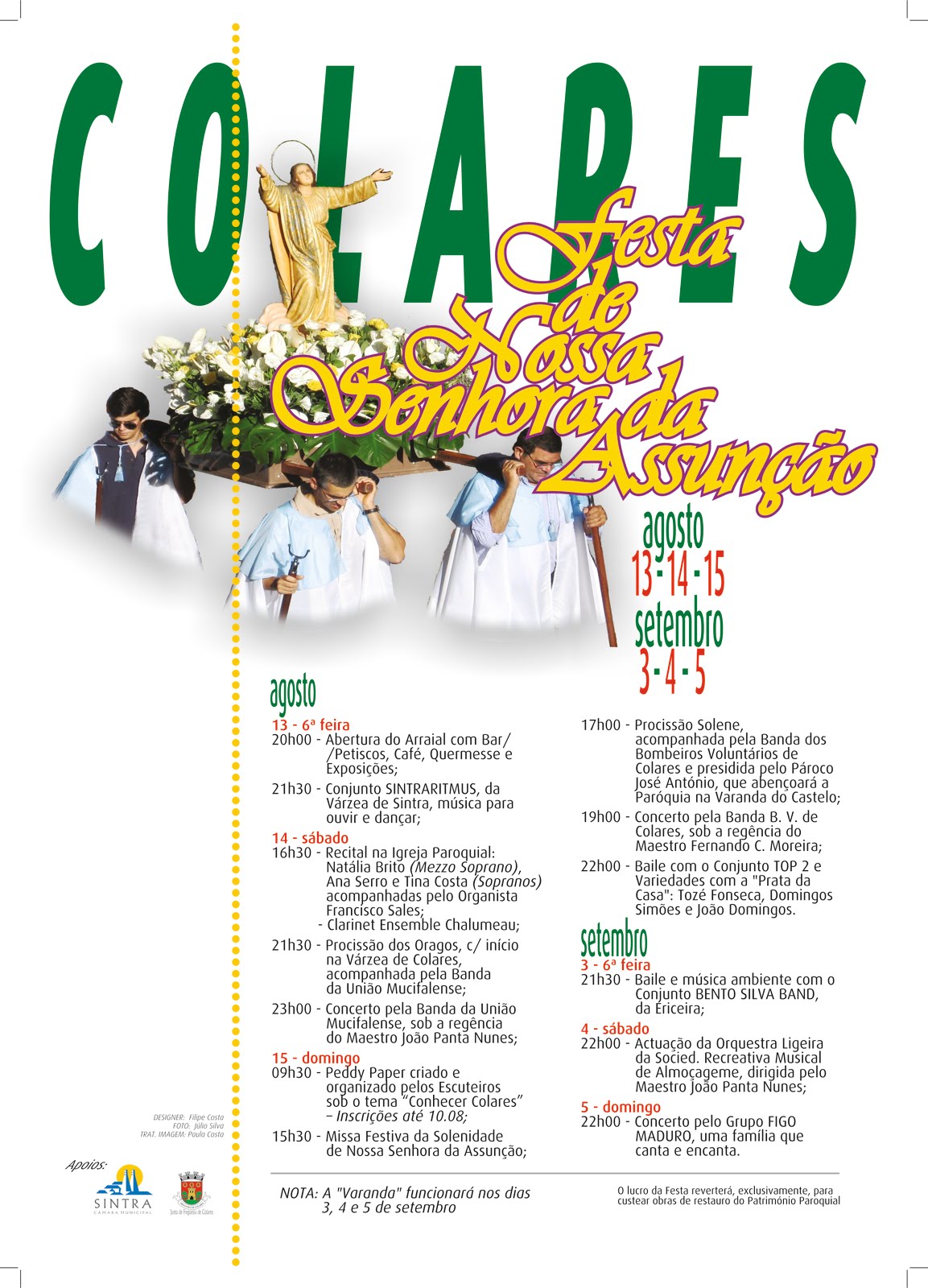 Este ano houve um maior investimento na programação das Festas de Colares neste ano de 2011. Penso que vai fazer toda a diferença, assim as pessoas queiram.